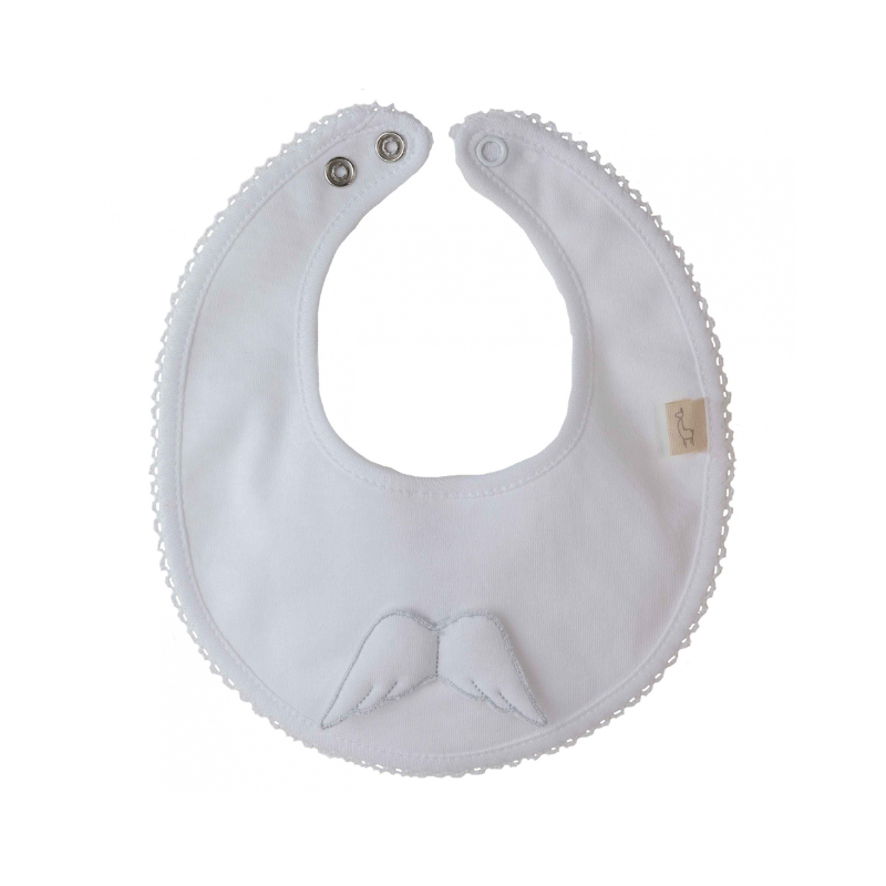 Babete de algodão com PVC do tema Angel no meio para proteger a roupinha do seu bebé.