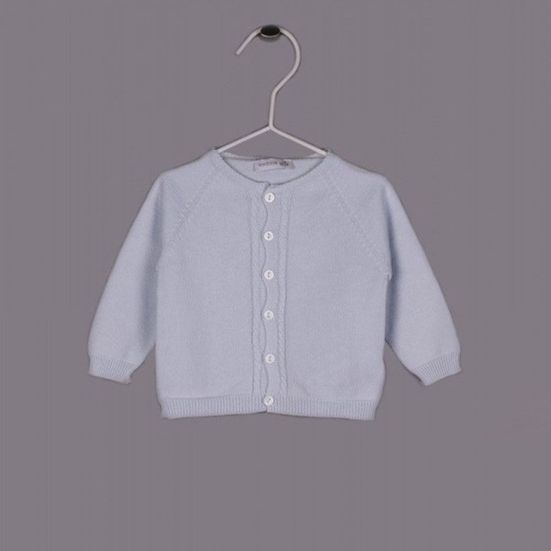Casaco de manga comprida ideal para bebé menino ou menina. O casaco de malha fina é produzido em algodão leve, com decote redondo. Aperta na frente com botões madre pérola. Produzido em Wholegarment, uma peça completa sem costuras, para maior conforto do bebé.
