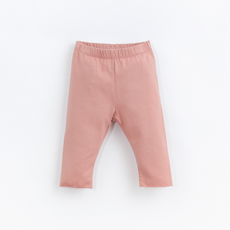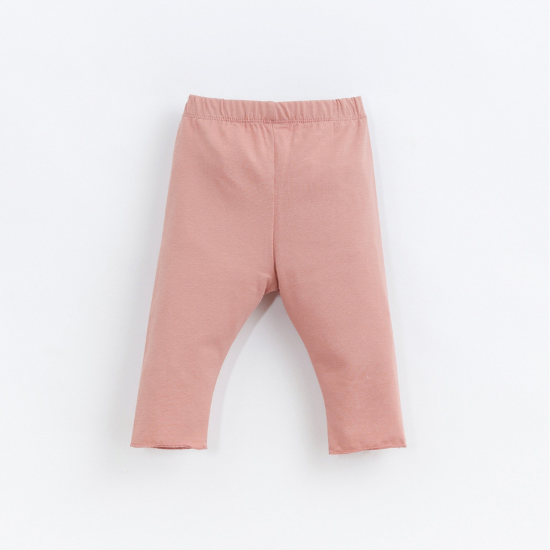 Estas leggings são feitas em malha de algodão orgânico. São um modelo liso com cintura elástica. Todas as matérias primas utilizadas nesta peça têm certificação Standard 100 by OEKO-TEX, o que a torna livre de substâncias nocivas para a pele das crianças.