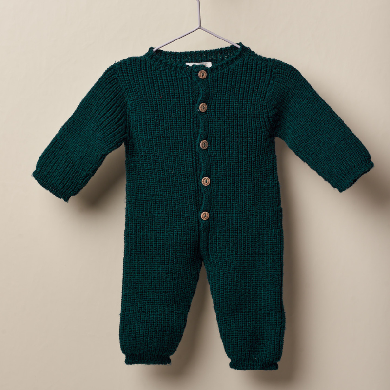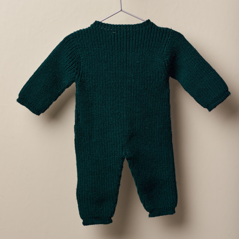 Macacão de manga comprida tricotado em malha de lã merino suave, ideal para bebés meninos e meninas, até aos 12 meses. O macacão CHRISTMAS EVE aperta na frente com botões de côco e entre as pernas com molas. Produzido em Wholegarment, uma peça completa sem costuras, para maior conforto do seu bebé.