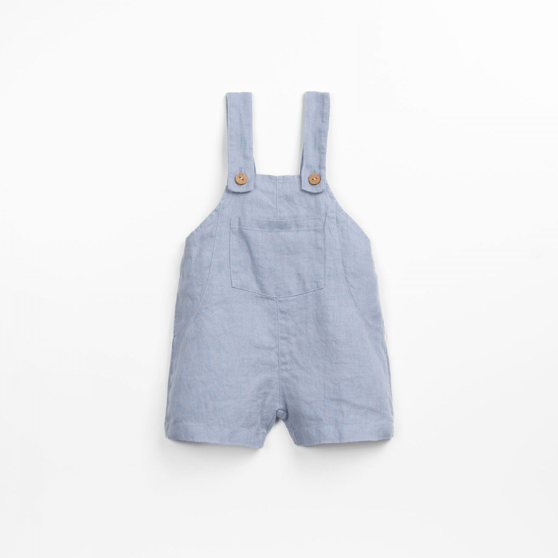 Macacão em linho, com decote quadrado e alças ajustáveis. Abertura frontal com botões de coco e um bolso no peito.