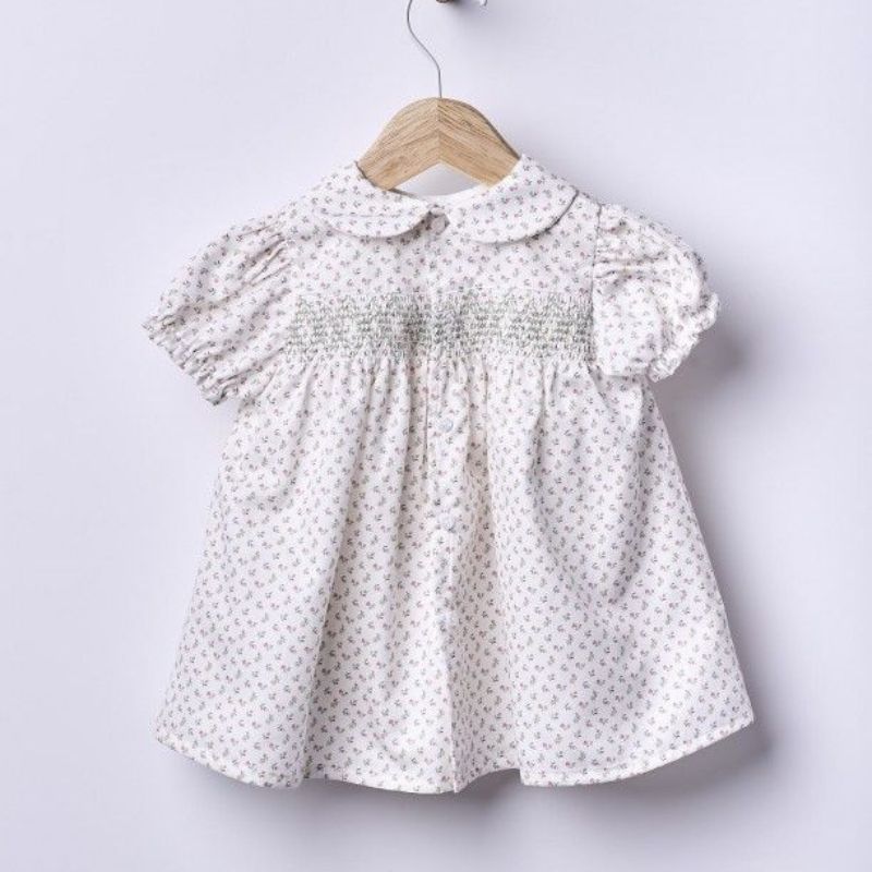 Vestido de manga curta ideal para bebés meninas, até aos 4 anos. O vestido A GRACEFUL SUMMER é produzido tecido de algodão suave com padrão floral botânico, forrado em algodão leve para maior conforto.