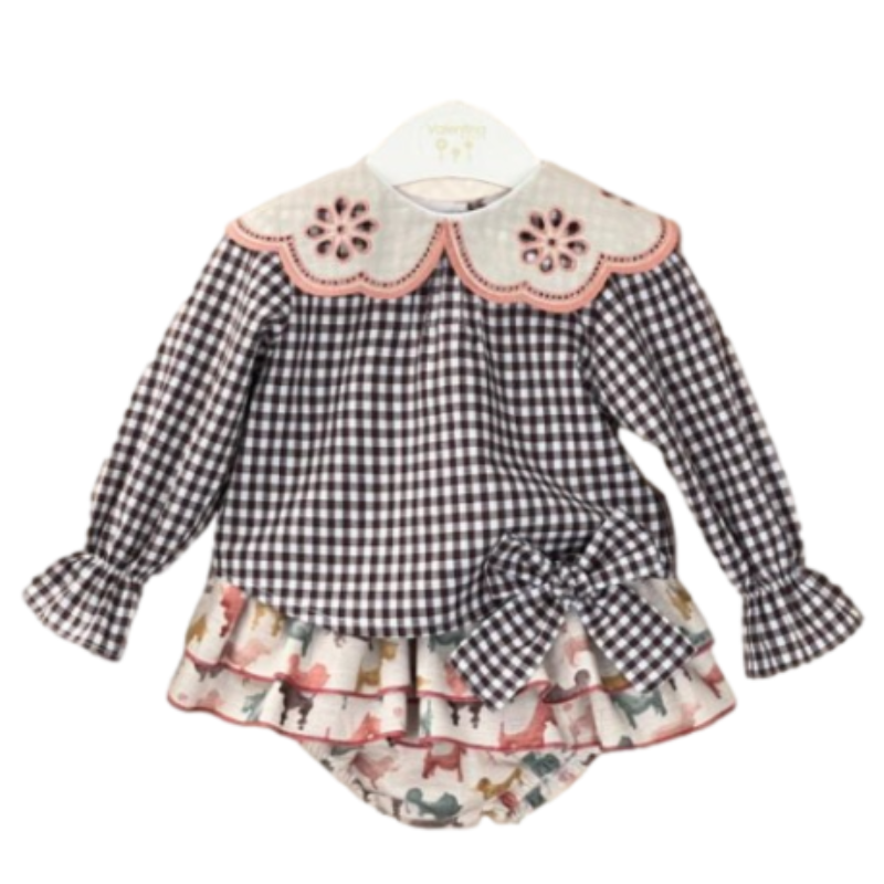 Conjuntio de tapa fraldas e camisa com gola bordada da coleção de out/inv da Valentina.