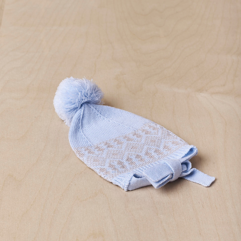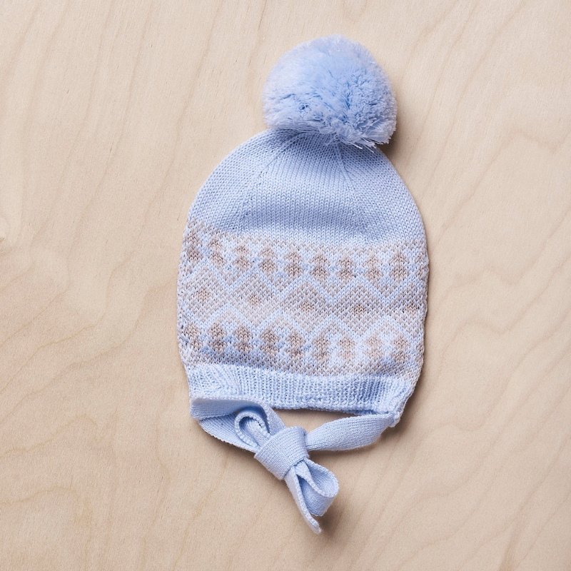 jacquard com pompom tricotado em malha suave de lã merino, ideal para bebés