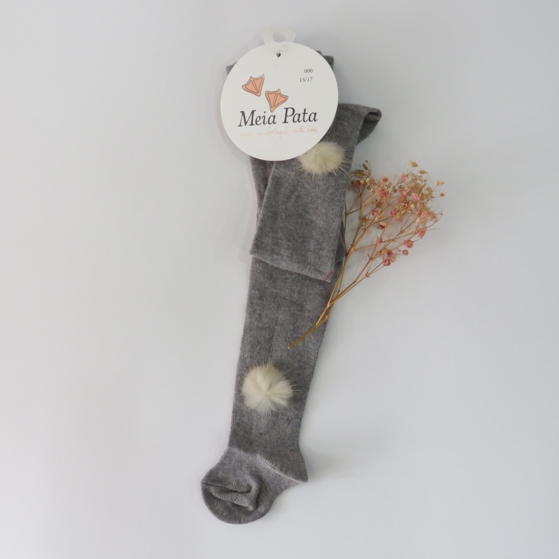• Collants lisos cinza com pompom de pêlo da Meia Pata