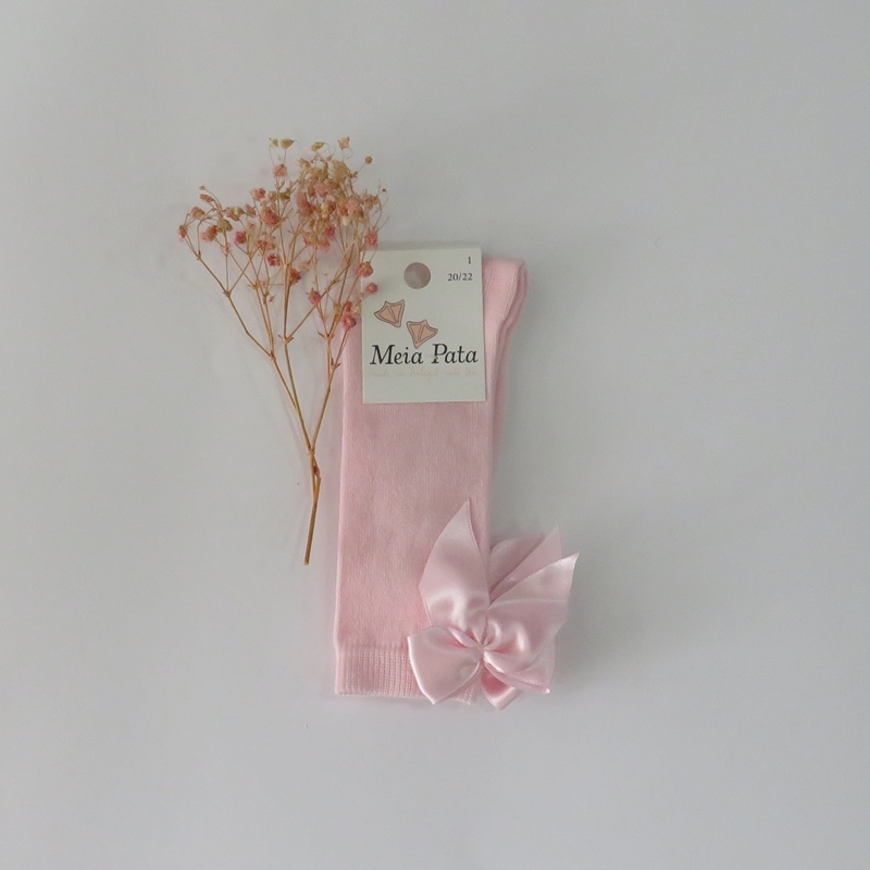 Meia lisa pelo joelho com laço de cetim atrás da Meia Pata. Disponíveis em várias cores!