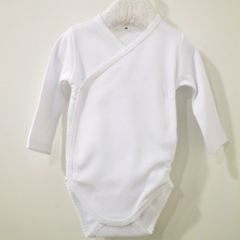 Body interior cruzado, em branco, rosa e azul, 100% algodão antialérgico.