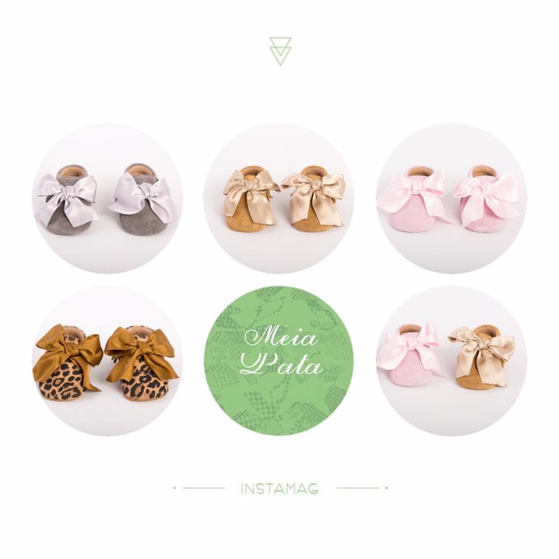 Mocassins em pele com laço de cetim.
